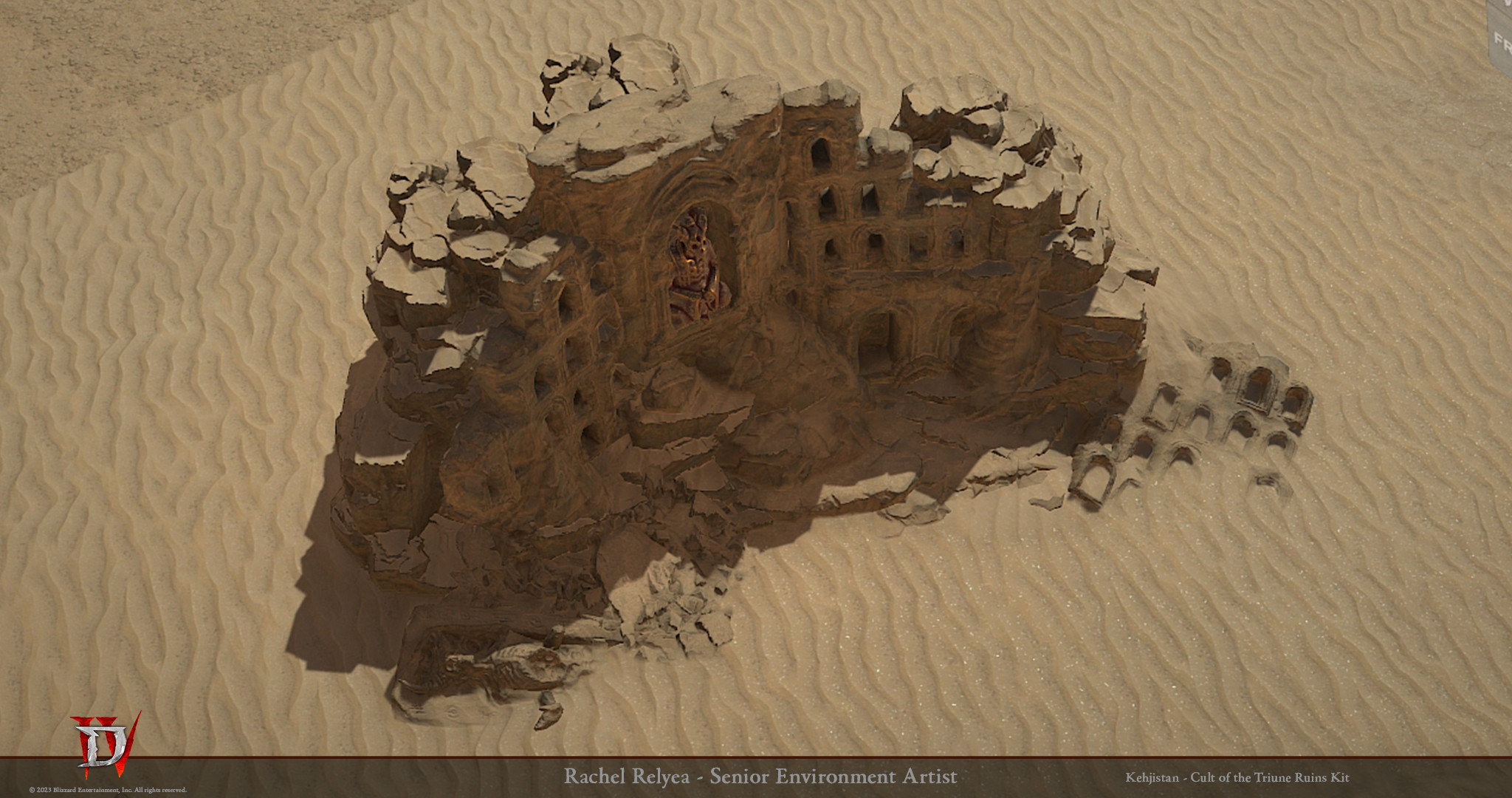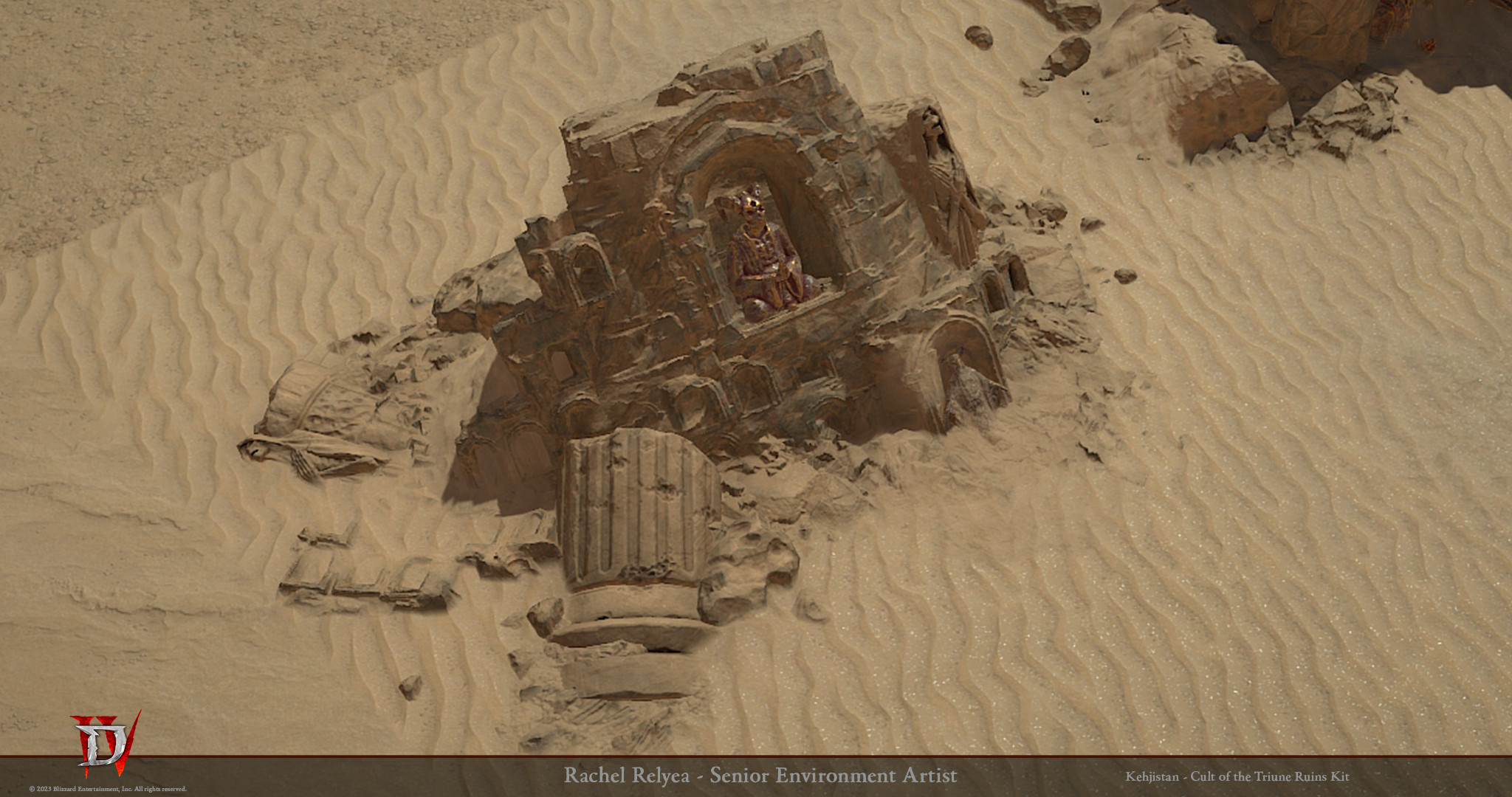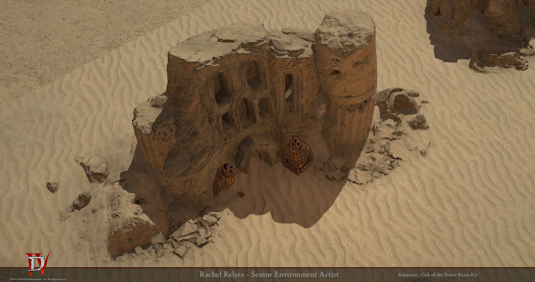 A set of ruins I kitbashed for the Cult of the Triune in Kehjistan. Besides arranging the elements to create various prefabs, I also updated materials on many of the assets to have a sandy appearance in order to integrate better into the environment.