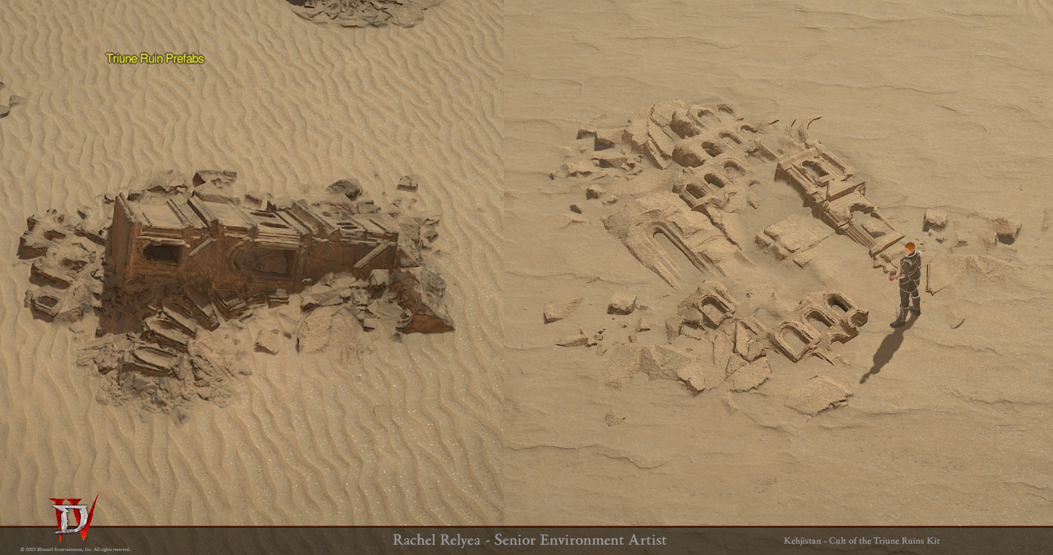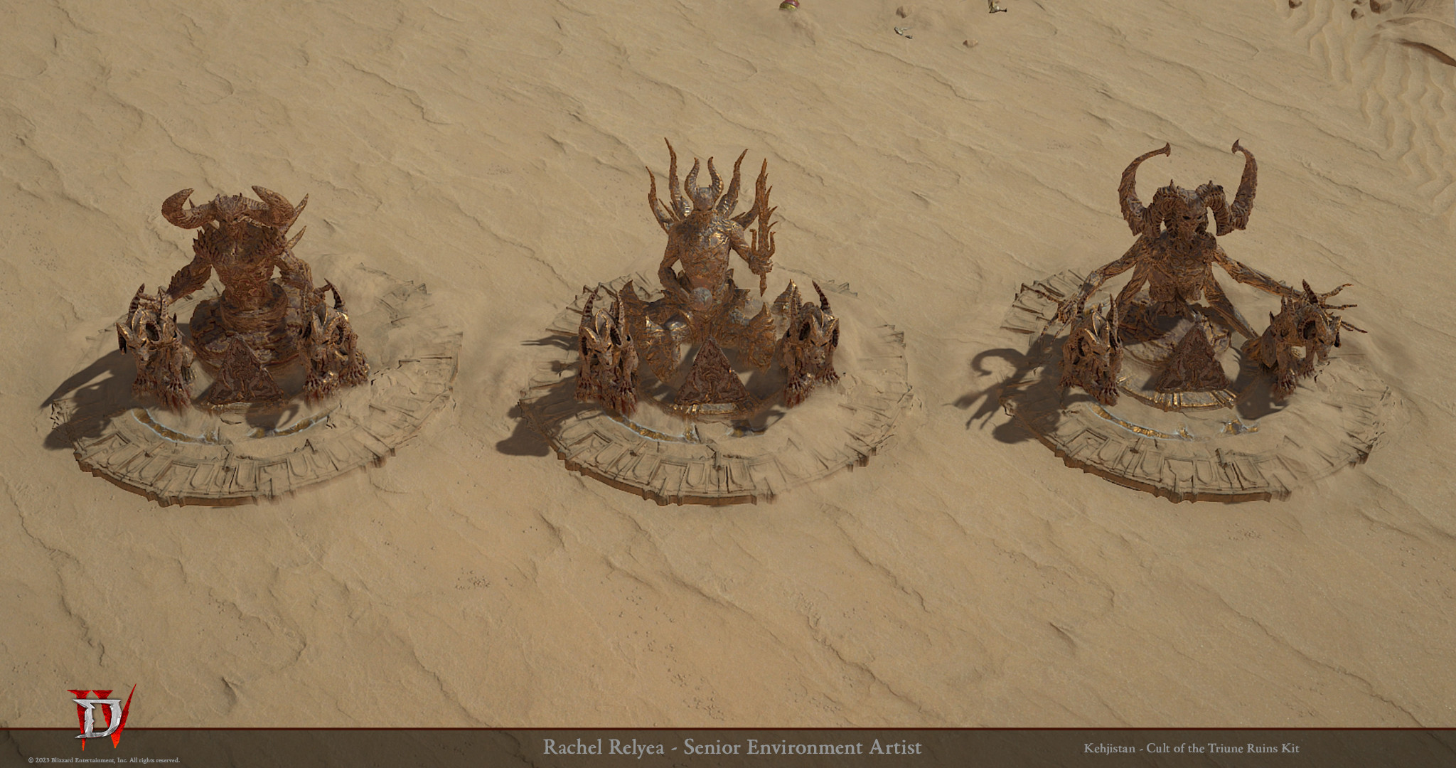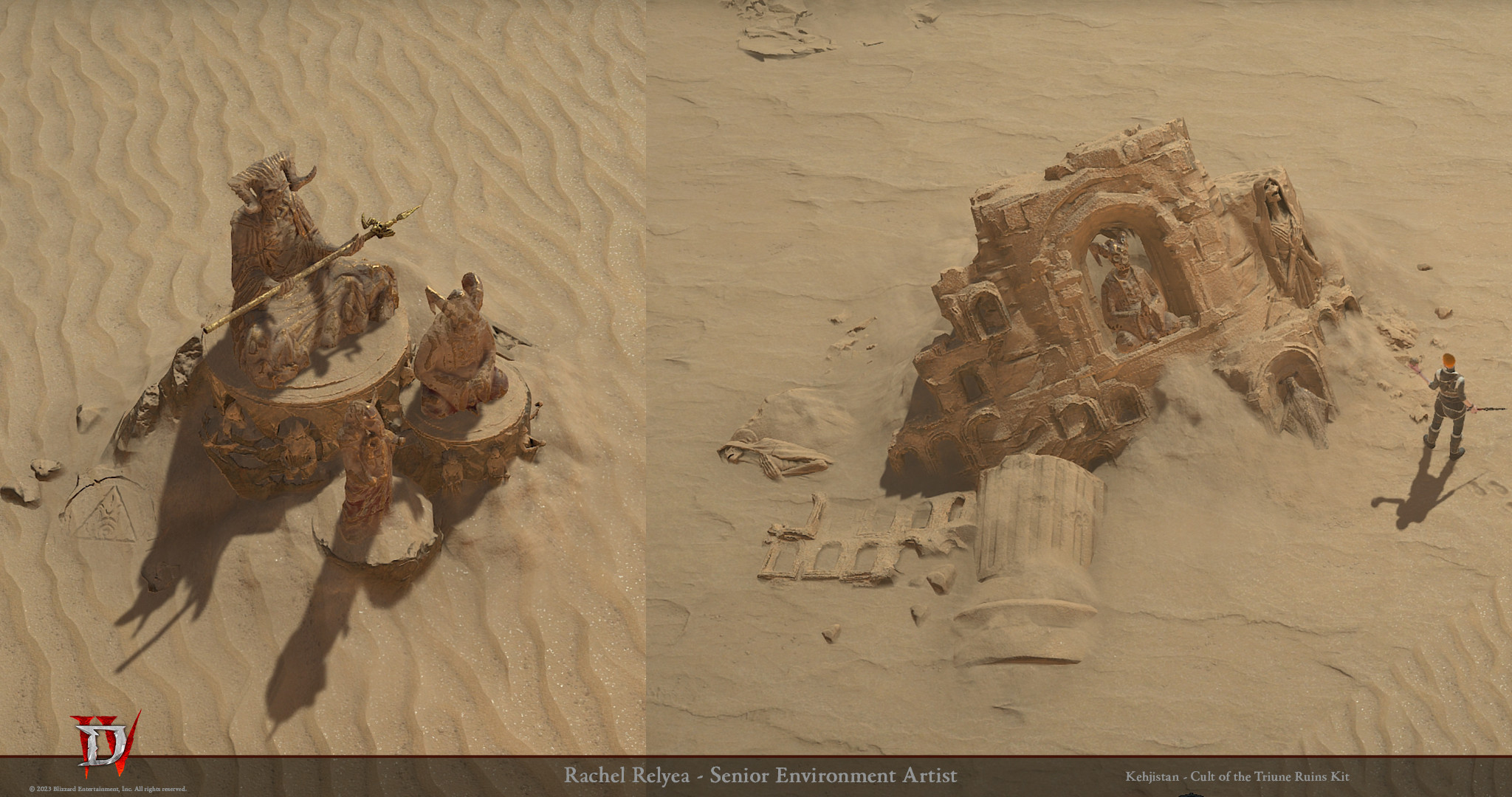 A set of ruins I kitbashed for the Cult of the Triune in Kehjistan. Besides arranging the elements to create various prefabs, I also updated materials on many of the assets to have a sandy appearance in order to integrate better into the environment.